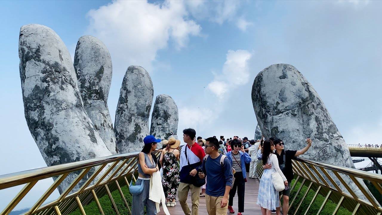 어마어마한 2개의 손이 받치고 있는 골든 브릿지는 바나힐 테마파크의 세계적인 명소입니다. 아름다운 풍경과 꽃축제가 함께하는 장소에서 워킹 투어해 보겠습니다. 끝까지 시청해 주시면 감사하겠습니다. The Golden Bridge, supported by two enormous hands, is a world-famous landmark in Bana Hills Theme Park. Let's take a walking tour of the place with beautiful scenery and flower festivals. Thank you for watching until the end.