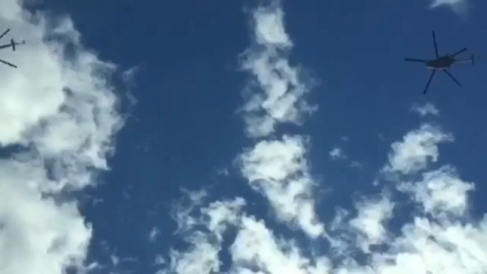 Водитель засмотрелся на вертолеты