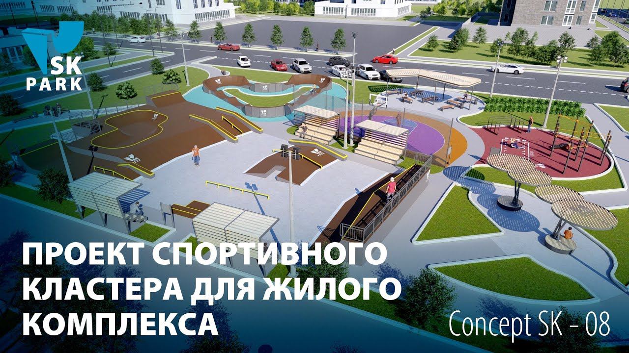Наши проекты https://skpark.ru/projects/zone-projects/ Спортивные кластеры - это современный формат спорткомплексов, объединяющий несколько площадок для различных дисциплин на одной территории. Подобное решение отлично вписывается в городской ландшафт и соответствует Федеральной программе "Комфортная городская среда". Состав проекта: скейтпарк,воркаут, памптрек,стритбол, зоны отдыха (2) Варианты интеграции: жилой комплекс, парк/сквер, спортивный объект. Многофункциональный спортивный парк для молодежи, включающий в себя 5 зон По желанию заказчика данный концепт можно дополнить другими спортивными площадками. Цвет основания площадок(бетон, травмобезопасное покрытие) и оборудования возможно оформить в любой дизайн и цвет. Вместимость – 70 человек Общая площадь: 2886 кв.м. 1.Скейт парк S- 479 кв.м. Данный проект скейт парка ориентирован для катания райдеров следующих дисциплин:скейтбординг, ролики, кик скутер(без электропривода), с начинающим и средним уровнем катания. 2.Зона Воркаут S- 107 кв.м. Требования к площадке: грунт, бетон, асфальт, травмобезопасное покрытие Вместимость: 15 Чел Тип: воркаут, ОФП, стрейчинг 3.Зона Памп трек S- 252 кв.м Универсальный памп трекгеометрия которого повторяет сим вол сердца.. Подходит для любого уровня райдеров. Включает в себя 4 поворота изменяющих направление движения спортсмена. Памп трек подходит для разового посещения, организации соревнований, показательных выступлений и организации спортивной школы для обучения детей от 10 лет. Длина трассы – 52 метра Вместимость:3 человека 4.Зона Стритбол S- 159 кв.м Требования к площадке: грунт, бетон, асфальт, травмобезопасное покрытие 5. Зона отдыха(1)- 122 кв.м. Навес обеспечит хорошую теневую защиту для отдыхающих и создаст эстетический вид общественного пространства. 5. Зона отдыха(2)- 59кв.м.Перголы Вместимость:14 человек Пергола с двумя круглыми теневыми навесами. Обеспечит хорошую теневую защиту для отдыхающих и создаст эстетический вид общественно-спортивного пространства. Каждая пергола оборудована местом для сидения, рассчитанная на 7 человек. Размеры перголы: 4740х3000х2820 Наши контакты/Our contacts: Мы в социальных сетях: https://vk.com/kreyvis https://vk.com/skparkru https://www.facebook.com/skparkru https://instagram.com/skpark_official Official page: skpark.ru E-mail: mail@skpark.ru Тел: +7(495)988-27-38 #скейтпарк #воркаутплощадка #стритбол