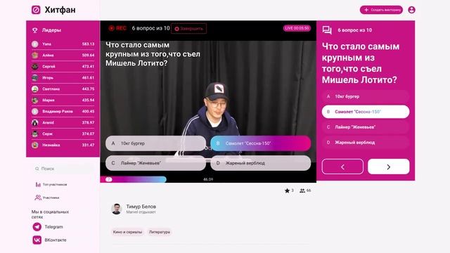 Викторина платформы интерактивных викторин ХитФан с ведущим DFM Тимуром Беловым от 7 ноября