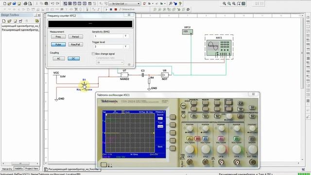 Растягивающий одновибратор в Multisim 14.1
