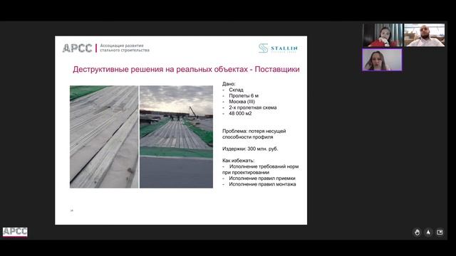 Ведущая: - Назмеева Татьяна Вильсовна, к.т.н., эксперт АРСС. Спикеры: - Меркулов Максим Иванович, Руководитель инженерно-технического центра STALLIN; - Кинзябулатова Диана Фидратовна, Генеральный директор «НТП «СтройСофтКонсалтинг». Программа вебинара: - особенности проектирования и применения профлиста на объектах; - кейсы с реальных строительных объектов; - удачные и неудачные примеры применения профлиста.