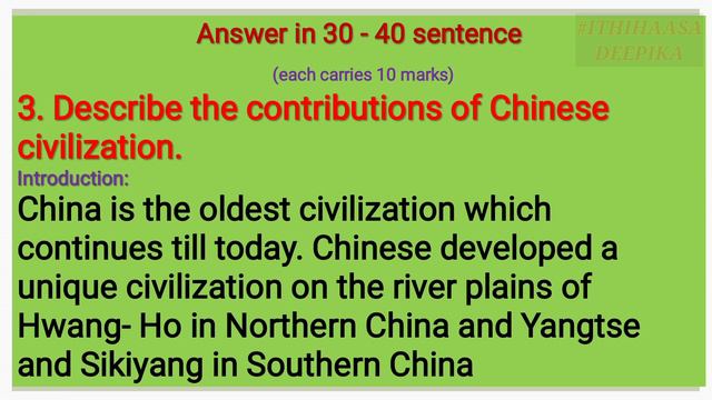 I PUC HISTORY; Chapter 3.4 Chinese Civilization ( History Notes: 5&10Marks)