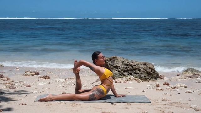 Bikini yoga on the beach Deep stretching full body #yoga #flexibility