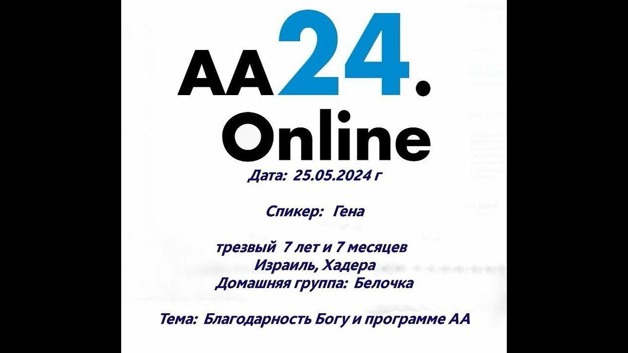 25.5.24г Гена, трезвый 7л 7м. Израиль,Хадера. ДГ: Белочка. ТЕМА: Благодарность Богу и программе АА