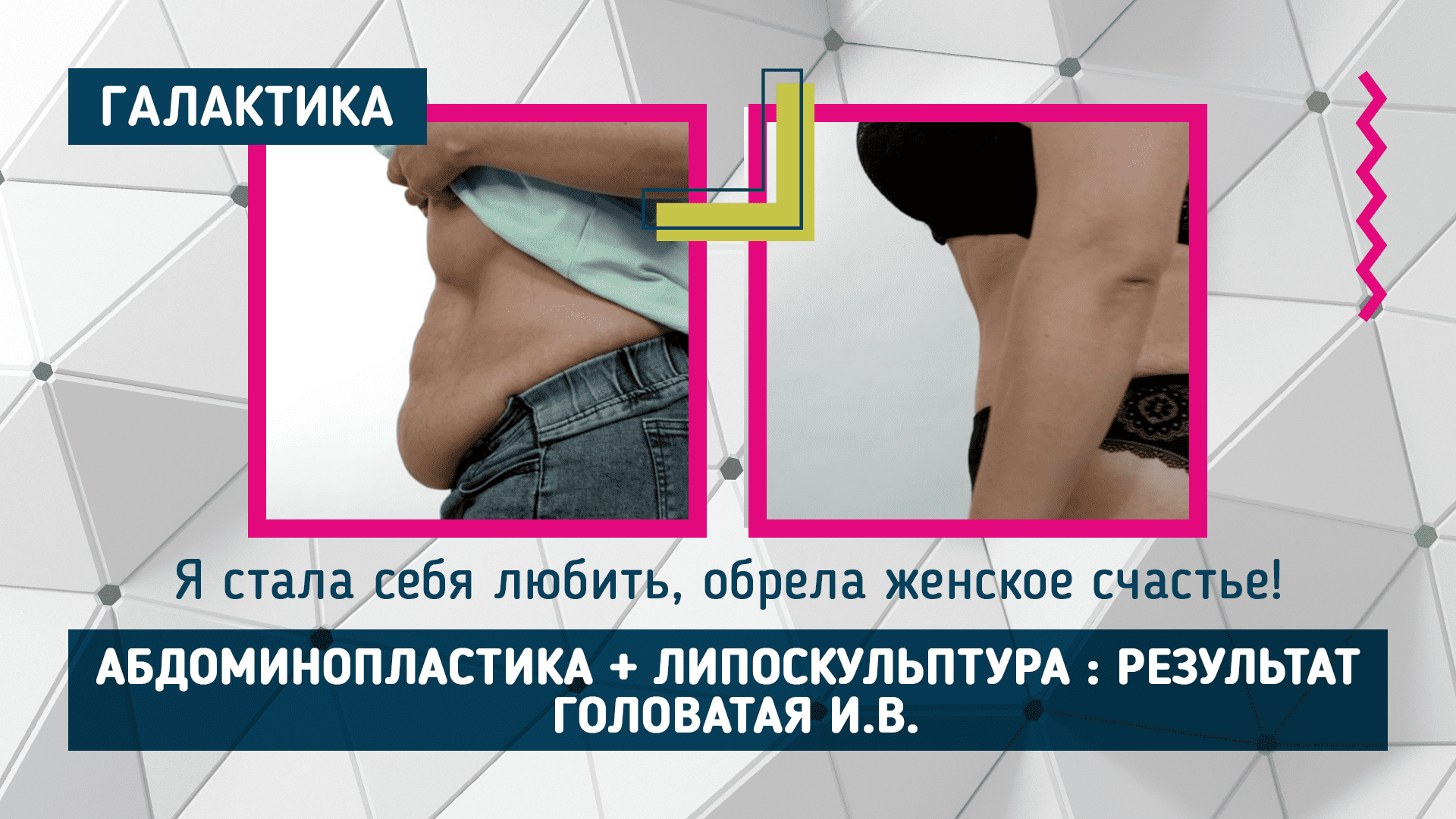 Олеся пришла на осмотр к Ирине Вячеславовне спустя шесть месяцев после операции. Олесе сделали липосакцию и липоскульптуру боков, талии, спины, поясничной области. Вторым этапом ей сделали абдоминопластику - иссечение кожно-жирового лоскута, который нависал приносил дискомфорт. ⌚ Нажмите на цифры для навигации по времени ролика: 0:01 Что было сделано 0:11 Комментарий пациентки о том, что изменилось после операции 0:39 Комментарий Головатой И.В. о результате операции 1:28 Комментарий пациентки о клинике "Галактика" Официальный сайт: http://galaktika.clinic ? +7 (495) 648 68 38 ? info@galaktika.clinic Мы в соцсетях: INSTAGRAM: https://www.instagram.com/galaktika.clinic FACEBOOK: https://www.facebook.com/galaktika.clinic #липоскульптурирование #липосакция #липофилинг #пластикамосква #липоскульптура #липоскульптурамосква #пластическаяхирургия #пластическаяхирургиямосква #пластическаяхирургиявмоскве #пластическийхирург #пластическаяоперация #красивоетело #липосакция #Липоабдоминопластика #сделатьЛипоабдоминопластику #сделатьЛипоабдоминопластикувмоскве #головатаяирина #хирургголоватая #пластическийхирургголоватая #Липоабдоминопластика #сделатьЛипоабдоминопластику #сделатьлипоабдоминопластикувмоскве