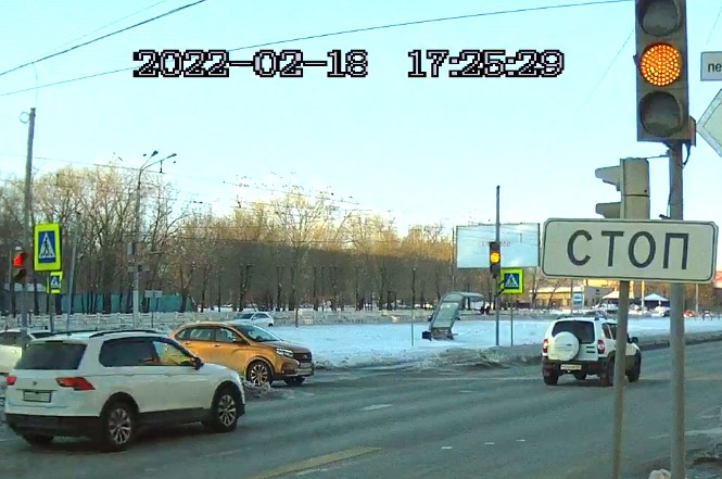Нарушение: Проезд на запрещающий сигнал светофора. Невыполнение требования ПДД об остановке перед стоп-линией, обозначенной дорожными знаками или разметкой проезжей части дороги, при запрещающем сигнале светофора ... Госномер нарушителя Е440ХА174 Volkswagen Tiguan 2017 г.в., белый. Перекрёсток ул. Советской и пер. Советского. 18-02-2022 п. 6.16 ПДД Дорожный знак "Стоп-линия". Место остановки транспортных средств при запрещающем сигнале светофора. п. 6.2. ПДД - жёлтый сигнал запрещает движение, красный сигнал запрещает движение, зелёный сигнал разрешает движение. п. 6.13 ПДД - при запрещающем сигнале светофора... водители должны остановиться перед стоп-линией (знаком 6.16).