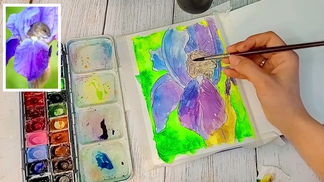 Мышка и Ирис. Растения и животные. Бесплатный урок рисования акварелью. Рисуем акварелью.