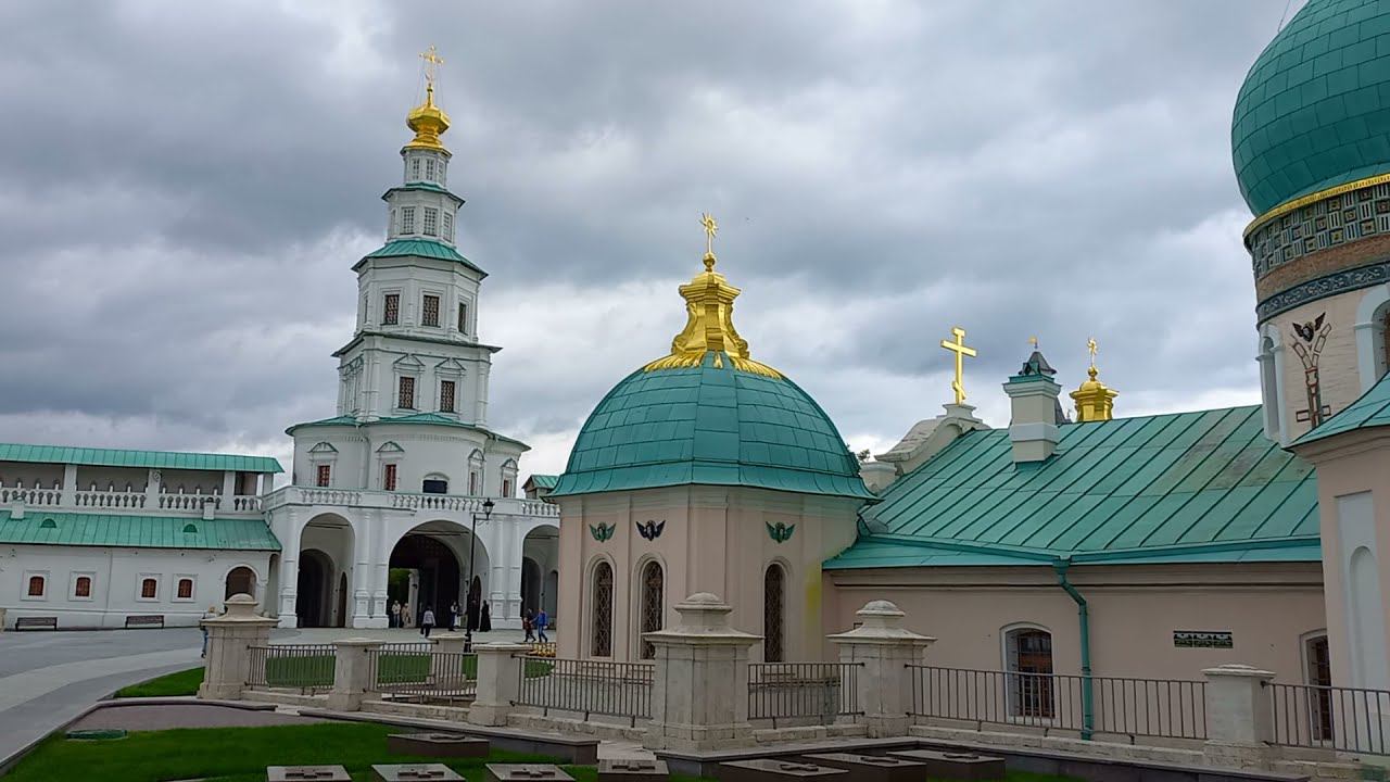 Новоиерусалимский монастырь. Хроника. Надвратная Входоиерусалимская церковь. Подземный храм Равноапостольных Константина и Елены. Погост с северной стороны. Гостевой дворец царевны Татьяны Михайловны. Братский корпус. Погода 13 августа 2021 года. + 20 тепла. Холодный ветер. ----------------- Запись на экскурсию по монастырю Новый Иерусалим Экскурсия по Святой земле (Фавор - место Преображения Господня, Елеон - место Вознесения Господня, Кедронская долина - район Мегидо Армагеддона, Скит патриарха Никона - река Истра (Иордан) - место Крещения Господня - Силоамский Источник - Воскресенский собор Начало в 11.00 и 13.30 Экскурсия проводится за пожертвование. Заказать любую экскурсию можно по WhatsApp (сообщения круглосуточно): +7 (918) 955 - 40 - 76 или по почте n-ierusalem@mail.ru