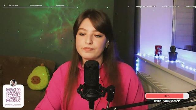 Привет, дорогой зритель! Меня зовут Юля, и я очень рада тебя видеть здесь на моем канале) Сегодня я провожу прямую трансляцию и поэтому прошу Тебя поддержать меня ну и конечно же петь песни вместе со мной) Хочу сказать огромное СПАСИБО всем донатерам и просто случайным зрителям! Я надеюсь Вам все понравится ♥ Ссылка на донат ИЛИ если вы хотите увидеть свое сообщение на экране -https://www.donationalerts.com/r/yunihka Если просто хотите поддержать мое творчество номер карты СБЕР: 4276550062989176 Заказ песни 100 р. Список песен которые я могу спеть: https://disk.yandex.ru/i/YTq-QLQ9VLuGvA Заказать песню по очереди: https://www.streamersonglist.com/t/yliannohka/songs?f=New #cover#music#стрим#прямойэфир#караоке ИЩИТЕ МЕНЯ ЗДЕСЬ: инстаграм (запрещен в РФ): https://www.instagram.com/yunihka/ (@yunihka) вк: https://vk.com/id92571089 Телеграмм: https://t.me/yunihka_youtube #стрим#караоке#разговоры#живойзвук#вокал#живойвокал#поем#петь#музыка#поемкараоке#петькараоке