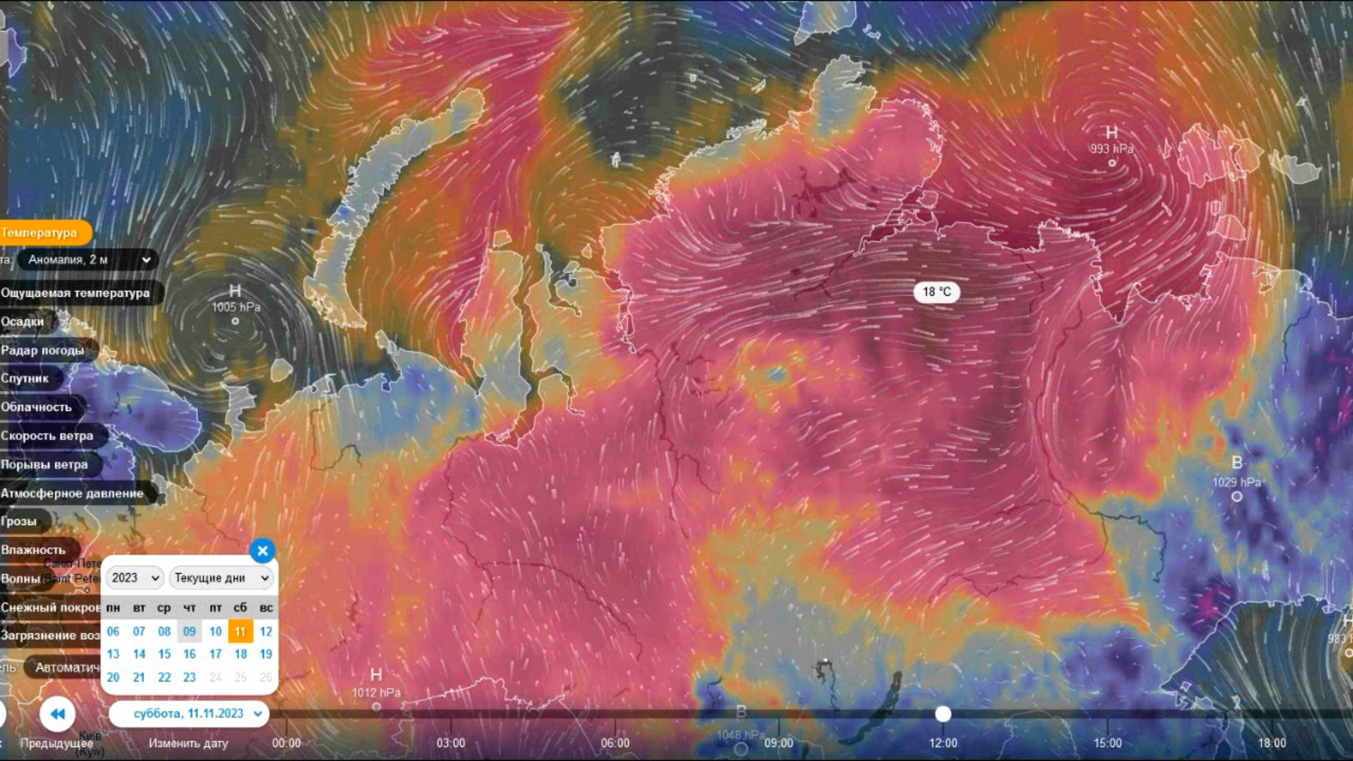 Огромная часть России в положительной аномалии 11 ноября 2023 года. Прогноз погоды