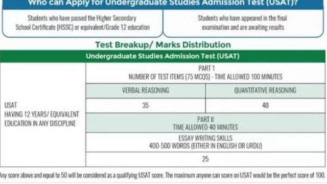 USAT Pattern Undergraduate Studies Admission Test (USAT) is based on an international Scholastic Aptitude Test (SAT) pattern & covers all known disciplines of Engineering, Medicine, Management, IT & Social Sciences at undergraduate entry level. Students qualifying USAT will stand eligible to all universities like SAT. Preparation could be done carefully according to the mode of test. Here’s how to prepare for USAT effectively USAT is a standardised test for admissions at the undergraduate level in universities all over Pakistan. The last date to register for it online is August 30. Students who have either passed or are waiting for the results of the Higher Secondary School Certificate (HSSC) or equivalent/Grade 12 education can apply for the test by registering through the website. Candidates applying for the MBBS or BDS programmes are not required to sit for the test. USAT is valid for a year and can be used by universities to gauge the ability of a student. Varsities can consider accepting USAT result cards as valid for their admission criteria for undergraduate students. Video link https://youtu.be/QajX7QUxz48 Filename sangtary or kamyabi zindagi badal dainy wali video.mp4 Video link https://youtu.be/QajX7QUxz48 Filename sangtary or kamyabi zindagi badal dainy wali video.mp4