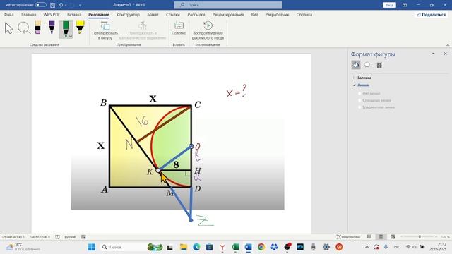 Найти сторону квадрата, в который вписан полукруг. Из серии Мое решение д/з В. Казакова. Автор канала Зайнулин Андрей Евгеньевич. Просьба не заниматься пиратским копированием!