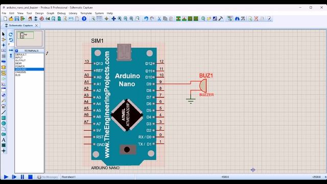 Подключение зуммера к Arduino в программе Proteus