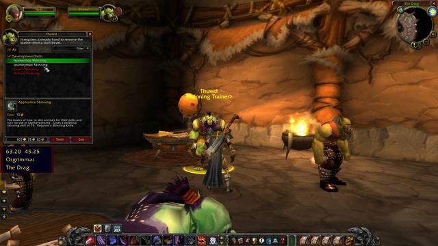 This video shows Orgrimmar Skinning Trainer WoW Classic location. Where is Orgrimmar Skinning Trainer in Classic World of Warcraft. You can find Vanilla WoW Skinning Trainer location in Orgrimmar following the coordinates. /way Orgrimmar 62.12 45.64 Thuwd World of Warcraft Classic is a virtual online game created by Blizzard Entertainment.