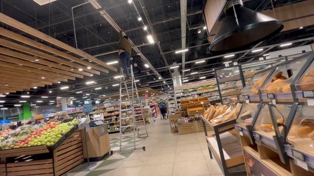 Протяжка кабеля в рабочее время магазина Перекресток