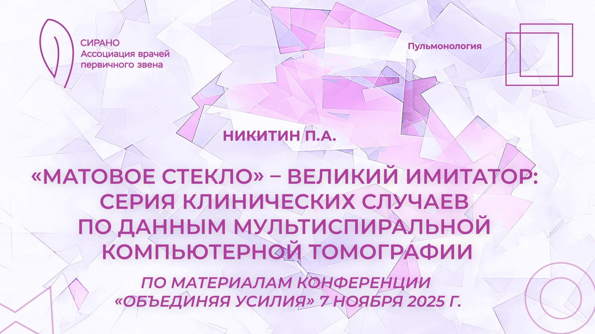 07.03.26 16:30 «Матовое стекло» – серия клинических случаев по данным мультиспиральной к. томографии