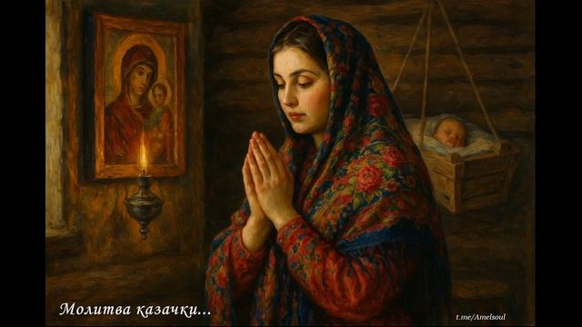 Перед образом встану в тишине на рассвете, Запалю я лампадку дрожащей рукой. Пусть за окнами вольно гуляет лишь ветер, Принося в нашу хату желанный покой. Поклонюсь до земли, помолюсь я сердечно, За своего казака что на верном коне. Пусть любовь моя будет защитой навечно, Огоньком, что сияет в густой темноте. Ой, ты Дон наш батюшка, воды свои сохрани, Степь-кормилица, деток моих прокорми. Дай нам мира, Господи, на родной земле, Чтобы муж мой вернулся ко мне на заре. Сбереги семью нашу, веру и честь, Чтобы только добрую слышать нам весть. Помолюсь за детей, чтоб росли они в силе, Чтобы дедов заветы умели беречь. Чтобы тучи густые над ними не плыли, И не знала рука их, воинственный меч. Пусть колосья пшеницы под солнцем созреют, Пусть не плачут в станицах вдовы в ночи. Твои милости, Боже, нас всех обогреют, Как сиянье простой и смиренной свечи. Степь бескрайняя, вольная, пахнет полынью, Дон качает на волнах седой небосвод. Мы укроемся Божьей святой благодатью, Пусть Господь наш казачий народ сбережёт. Ой, ты Дон наш батюшка, воды свои сохрани, Степь-кормилица, деток моих прокорми. Дай нам мира, Господи, на родной земле, Чтобы муж мой вернулся ко мне на заре. Сбереги семью нашу, веру и честь, Чтобы только добрую слышать нам весть. Вырастут дети, как вольные птицы, Будут беречь наш отеческий край. Славься вовеки, родная станица, Счастьем и миром всегда процветай. Слышу звон колокольный к заутрене, Разливается благовест над рекой. Всё, что зрело в душе моей искренне, Обретает небесный покой. Ой, ты Дон наш батюшка, воды свои сохрани, Степь-кормилица, деток моих прокорми. Дай нам мира, Господи, на родной земле, Чтобы муж мой вернулся ко мне на заре. Сбереги семью нашу, веру и честь, Чтобы только добрую слышать нам весть. Тихо свечка плавится, гаснет рассвет... Дай нам, Боже, мира на множество лет. Аминь. Песня: https://t.me/Amelsoul/554
