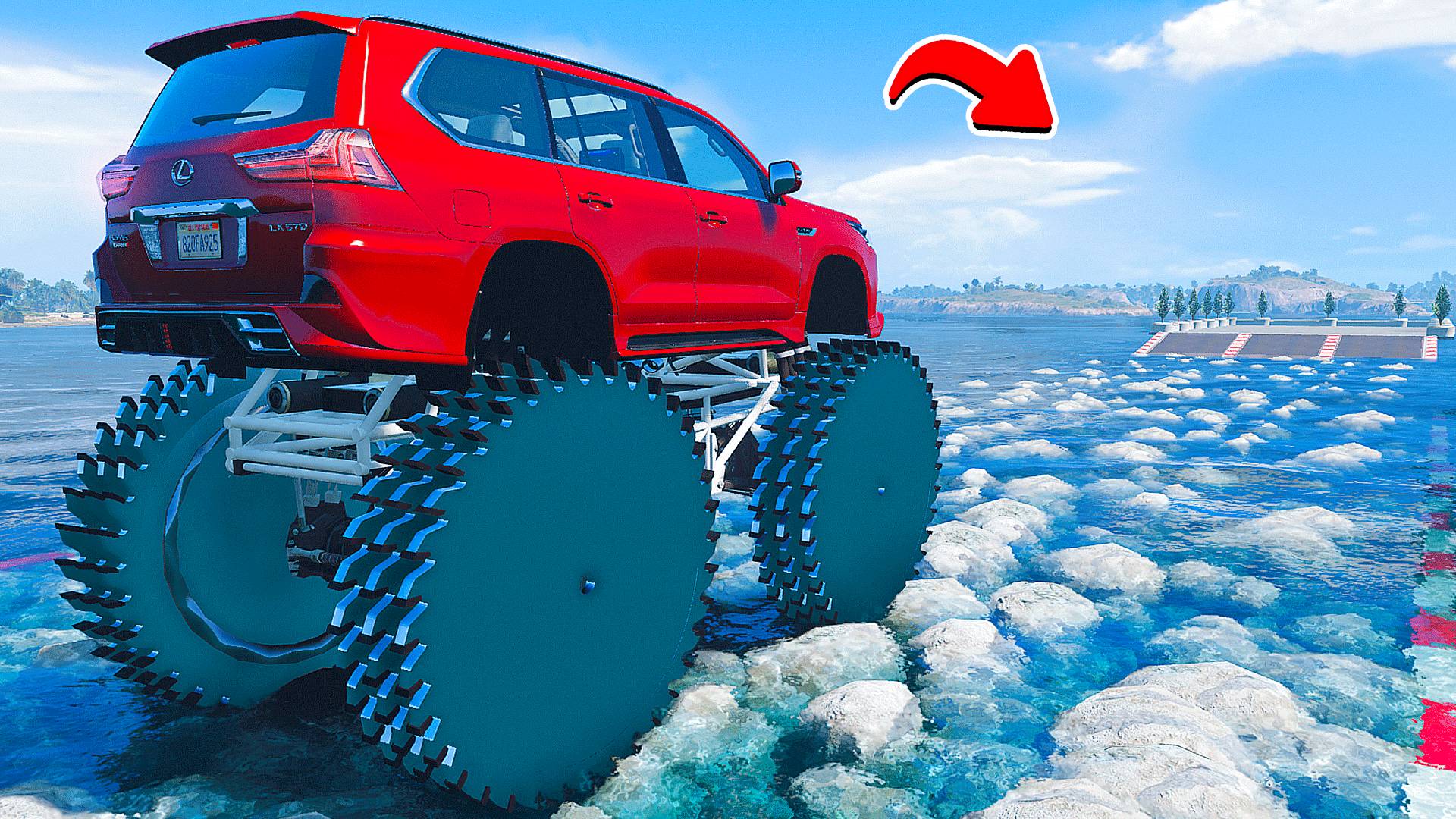ПРОЕХАЛ ВОДНЫЕ КАМНИ на ГИГАНТСКОМ ЛЕКСУСЕ с ПИЛАМИ в ГТА 5 МОДЫ - ЭКСПЕРИМЕНТЫ в GTA 5 MODS
