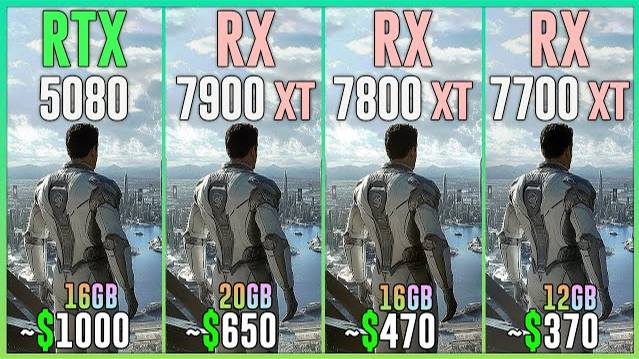 RTX 5080 vs RX 7900 XT vs RX 7800 XT vs RX 7700 XT - Test in 25 Games 2025 1080p, 1440p, 2160p, 4k, 2k, dlss 4, dlss 3.7, fsr 4, fsr 3.1, ray tracing, frame generation, native, Multi Frame Generation ⏩GPUs & Amazon US⏪ (Affiliate links) 💥RTX 5080 16GB: https://amzn.to/4jyqKER 💥RX 7900 XT 20GB: https://amzn.to/47KIg2P 💥RX 7800 XT 16GB: https://amzn.to/3snnBBv 💥RX 7700 XT 12GB: https://amzn.to/3EaQ2Wb ⏩PC Setup⏪ - OS: Windows 11 Professional 64-bit - CPU: Ryzen 7 9800X3D - MB: GIGABYTE X870 AORUS Elite - RAM: Corsair Vengeance RGB 32GB DDR5 - 6400 Mhz CL32 💁♂️ When you buy from my Amazon links, I earn a small commission at no extra cost to you, plus you support the channel thank you.