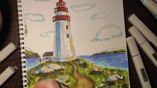 Как нарисовать маяк на берегу урок № 8