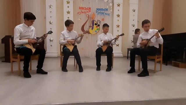 Квартет "Три струны" - Куляшов Михаил, Баландин Дмитрий, Версоцкий Максим, Михалев Ярослав Номинация «Инструментальное искусство» Направление «народные инструменты» Форма «Малые формы» (от 2 до 5 чел.) Возрастная группа - 11-14 лет Преподаватель(ли) - Павлова Людмила Николаевна Концертмейстер - Ботова Людмила Вячеславовна КОНКУРСНАЯ РАБОТА: Р.н.п. в обр. А. Авксентьева "Ай, кумушки домой" г. Гремячинск МБУ ДО "Детская школа искусств"