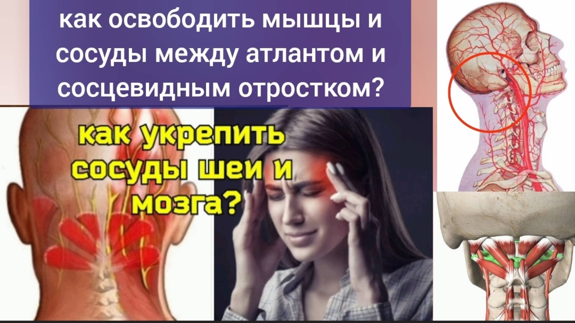 Как освободить мышцы и сосуды между атлантом и сосцевидным отростком? К сосцевидному отростку крепятся 5 важных мышц шеи и головы, влияющие на мозговое кровообращение. Сосцевидный отросток влияет на слух, шум в ушах, появление головной боли. Необходимо мягко, аккуратно использовать особые методы декомпрессии, для снятия мышечных спазмов и освобождения сосудов и нервов. Работа шеи и головы зависит от мышц, а с мышцами можно научиться работать. Как восстановить нормальную работу всех мышц шеи и головы? заказать видеокурсы "Укрепление шейного отдела позвоночника", "Укрепление нервов и сосудов мозга": по электронной почте valeo2020valeo@yandex.ru или телеграм @registr1209 телеграм: t.me/registr1209 канал Премиум, для доступа к уникальным упражнениям для укрепления здоровья: https://dzen.ru/zdor1?tab=premium