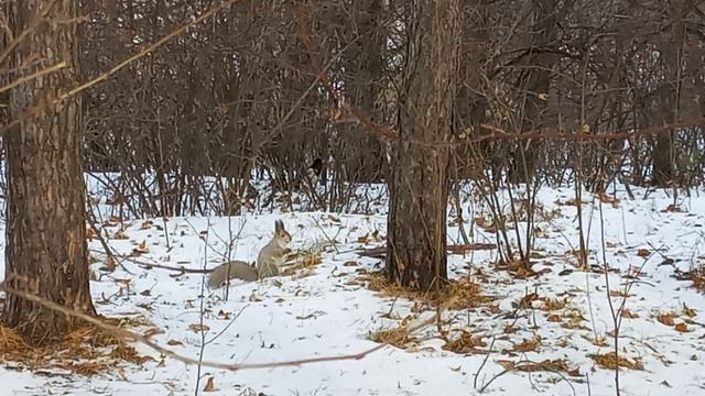 Белка сменила шубку, закапывает орехи на зиму