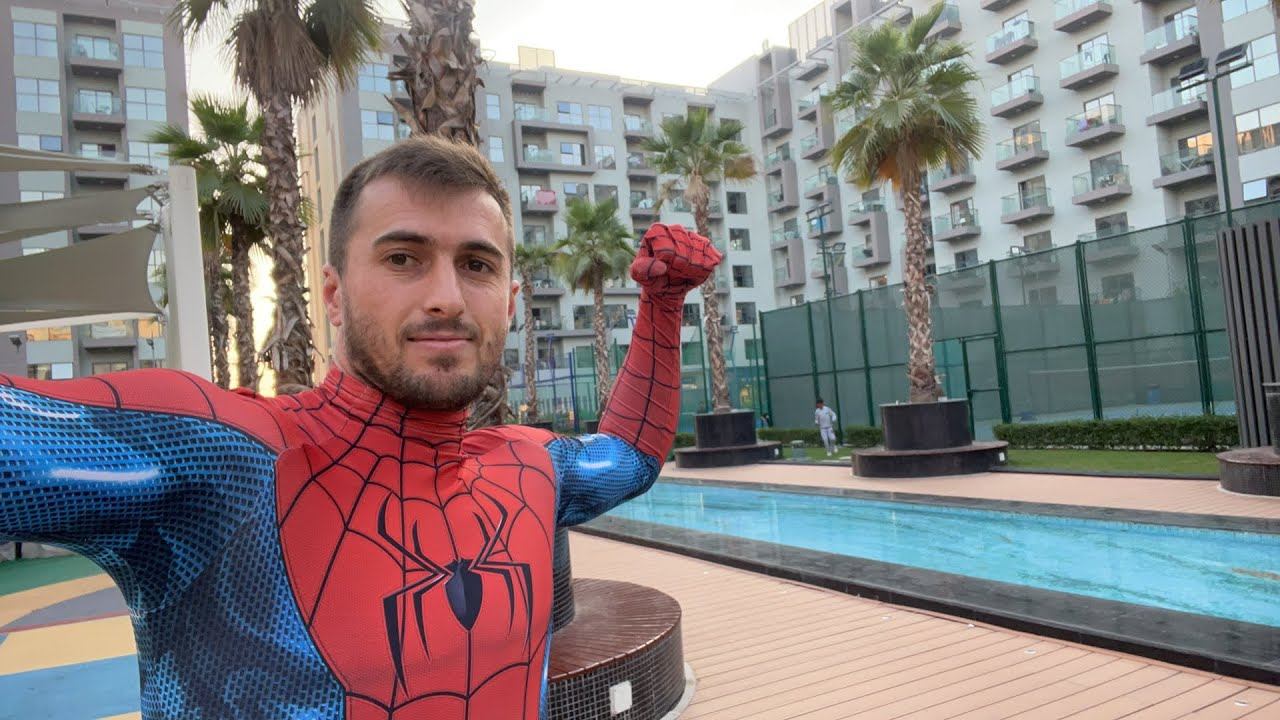 Видео-блог о человеке-пауке, который демонстрирует свои трюки и разминки в Смм (Сети Молодежи). Блогер просит зрителей ставить лайки и упоминает о криках и опасностях, создавая комический контекст.