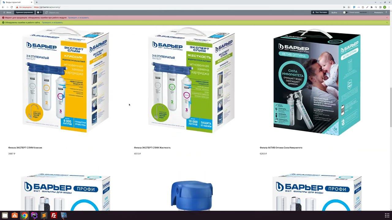 barrier Страница Гарантия, вывести товары