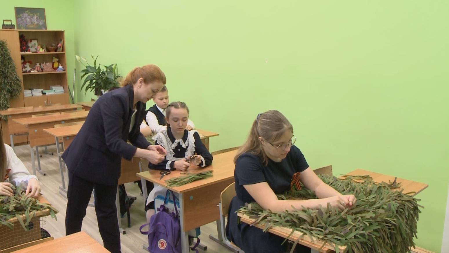 В школе №41 на уроках труда ученики плетут маскировочные костюмы
