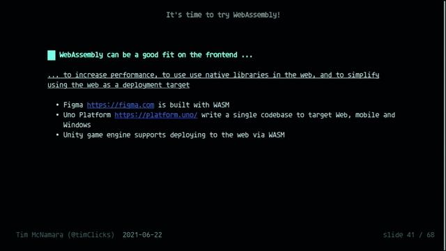 "It's time to try WebAssembly" - Tim McNamara (nz.js(con); 2021)