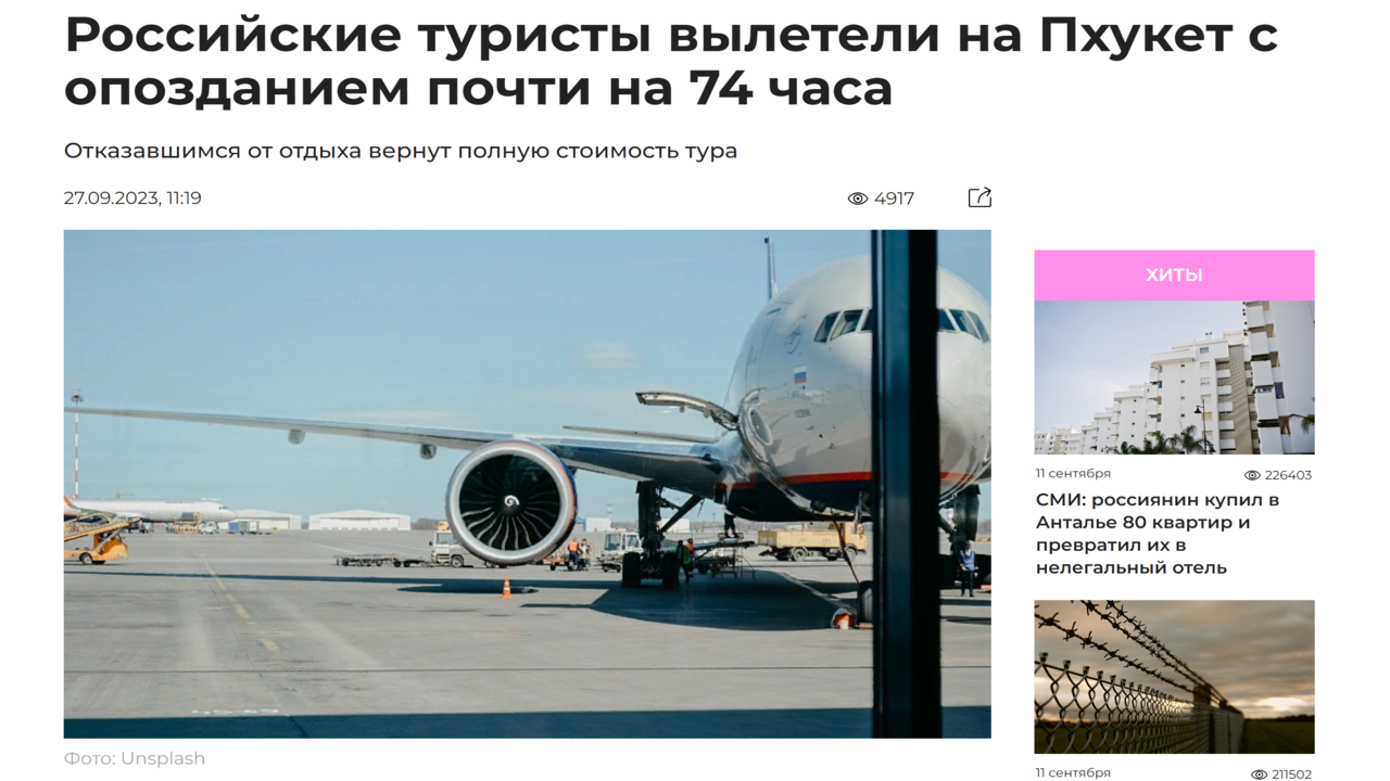 Новости туризма 27/09/2023 Российские туристы вылетели на Пхукет с опозданием на 74 часа #туризм