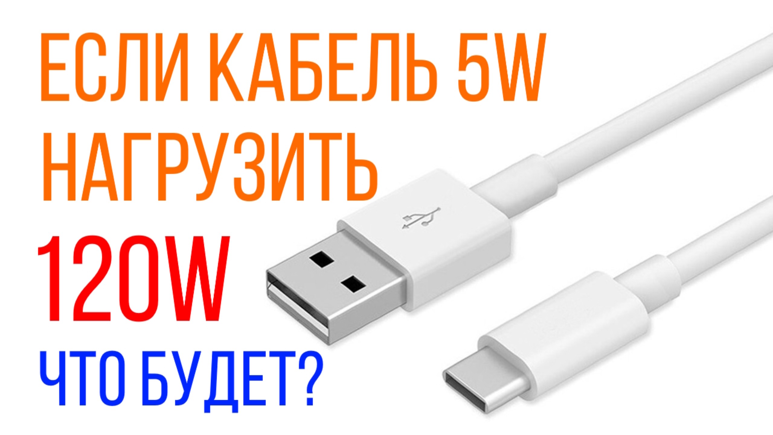 Тестирование 5W кабеля USB-A на способность передать 120W мощности. Сгорит, нагреется или другое?