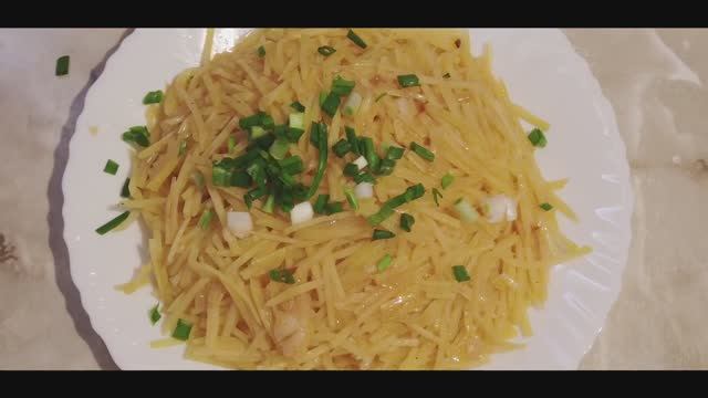 Давайте приготовим... Салат из помидоров - да! Из огурцов - да! Из огурцов и помидоров - да! Из капусты, из морковки, из баклажанов, из свеклы - все ДА! А из картошки? Тоже - Да! Делаем картофельный салат - КАМДИЧА. Блюдо корейской кухни. Разумеется, никто лучше китайцев или корейцев его сделать не сможет, но вариация на тему все же возможна. Первым делом шинкуем картошку. Меленько и тоненько. Погружаем получившуюся соломку в ванну с холодной водой, чтобы смылся лишний крахмал. Пока картоха купается, мы нарезаем лук четвертинками колечек и обжариваем до золотистого цвета. Готовый лук вынимаем и даем время остыть. Промываем картофельную соломку и бросаем ее в кипящую воду. Варим помешивая ровно 5 минут. Не больше! Запомните. Это важно. Вынимаем картошку из кипятка, даем остыть и стечь излишкам влаги. Нам понадобится отдельная емкость. В нее помещаем картофель, засыпаем сюда же обжаренный лук. А сейчас пришло время специй. Всыпаем скопом соль, паприку, кориандр, острый красный перец и черный молотый перец. Также необходимо сдобрить картофель одной-двумя ложками уксуса. Смотрите по вкусу. И самым последним в очереди стоит чеснок. Много нам не понадобится, а вот зубочек-другой обязателен. Выдавливаем и сразу же чувствуем, как распространяется безумно аппетитный аромат. И завершающий штрих. Раскаляем на сковороде подсолнечное масло до появления дымки и выливаем его в самую середину нашего формирующегося салата. С радостным шипением масло поглощается картошкой, а мы помогаем ему размешивая и перемешивая. Ну вот и все. Салат готов! Надеюсь, вам понравится его вкус. А его приготовление, как вы сами видели, не составляет никакой сложности. У меня этот салат - в списке любимых. Причем, в любое время года. Приятного аппетита! Также можно смотреть: https://t.me/COOK_TV https://zen.yandex.ru/cook_tv https://youtu.be/LoAo99Ddy_E Ингредиенты: Картофель - 4-5 шт Лук - 2 шт Соль - 1 ч/л Кориандр - 0,5 ч/л Паприка - 0,5 ч/л Перец черный молотый - 0,5 ч/л Острый красный перец - по вкусу Чеснок - 1-2 зуб Уксус столовый 9-процентный - 2 ст/л Масло подсолнечное - 50 г