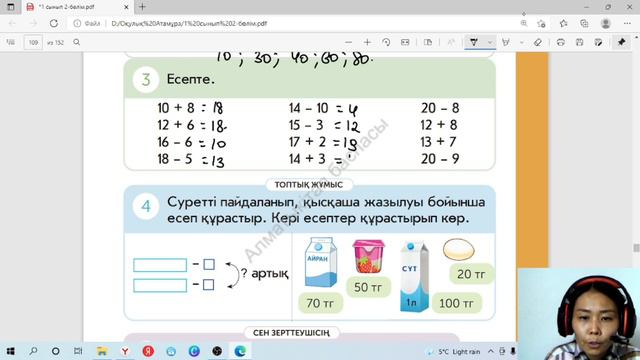 1 сынып. Математика. 114-сабақ. Ұсақтау және төлем жасау