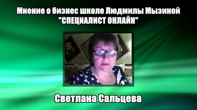 Мнение о бизнес школе Л.Мызиной "СПЕЦИАЛИСТ ОНЛАЙН" выпускницы Светланы Сальцевой