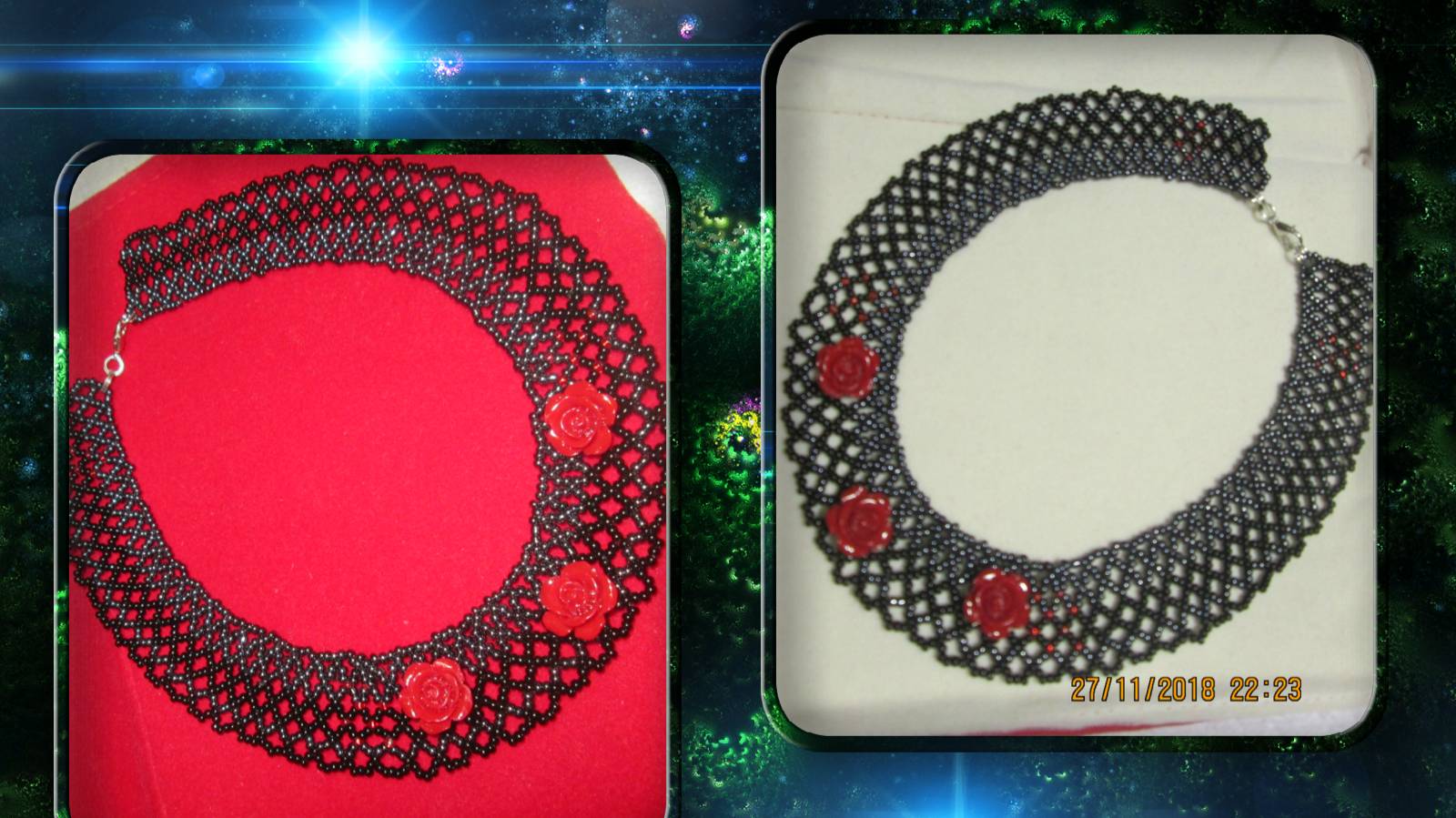Колье на сетке с розочками