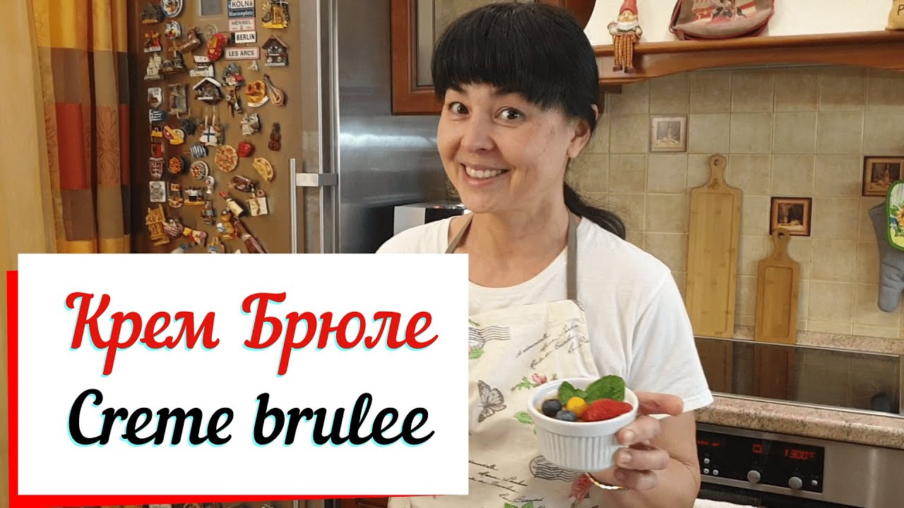 Крем-брюле (фр. crème brûlée, буквально обожжённые сливки) - нежный, легкий французский десерт из заварного крема с карамельной корочкой. Приготовим домашнее крем-брюле.Традиционно крем-брюле готовят в порционных формочках - рамекинах. Рецепт крем-брюле очень прост и его может повторить каждая хозяйка. Ингредиенты на 6 порций: - куриное яйцо........................7 шт - сахарный песок...................100 г - стручок ванили......................1 шт - сливки 35 % жирности ......500 мл - ягоды для украшения. Приготовление: - Из стручка ванили вынуть семена. Натуральную ваниль можно заменить на ванильный сахар или ванилин. - Сливки довести до кипения и добавить ваниль. Дать остыть 15 мин. - Отделить белки от желтков. Желтки смешать с сахаром. - Добавить к желткам горячие сливки. - Смесь разлить в рамекины.Рамекины поставить в поднос и залить горячей водой. Вода должна закрыть рамекины до половины. - Запекать в духовке 60 мин. при температуре 110-130 C. Или 35 минут 150 С - Запеченную смесь сначала охладить до комнатной температуры, потом поставить в холодильник на 24 часа. - Присыпать поверхность крем-брюле сахаром и обжечь газовой горелкой до получения золотистой корочки. - Украсить ягодами и листиками мяты. Приятного аппетита! ******************** Я делюсь своими проверенными рецептами: простыми и сложными, но приготовленные не профессиональным поваром, а обычной женщиной и в домашних условиях! Только то, что действительно вкусно! ************************************* Подписывайтесь на мой канал Стряпуха: https://www.youtube.com/channel/UC3ZGrDTC5lb1fszUqFKdsfw Подписывайтесь на мой канал Кузина Вышивка: https://www.youtube.com/channel/UCkeKmw-HhIjdpOIDSLB4ziQ RUTUBE https://rutube.ru/channel/23487832/ Мой инстаграм https://www.instagram.com/elmira_kuzina/ Мой Яндекс Дзен : https://zen.yandex.ru/id/5fae36f83d30c3097ceaee63 *** #крембрюле #рецепткрембрюле #cremebrulee #французскийдесерт #крембрюлерецепт #какприготовитькрембрюле #домашнеекрембрюле #каксделатькрембрюледома #обожженныесливки #французскийкрембрюле #десерт #десертизсливок