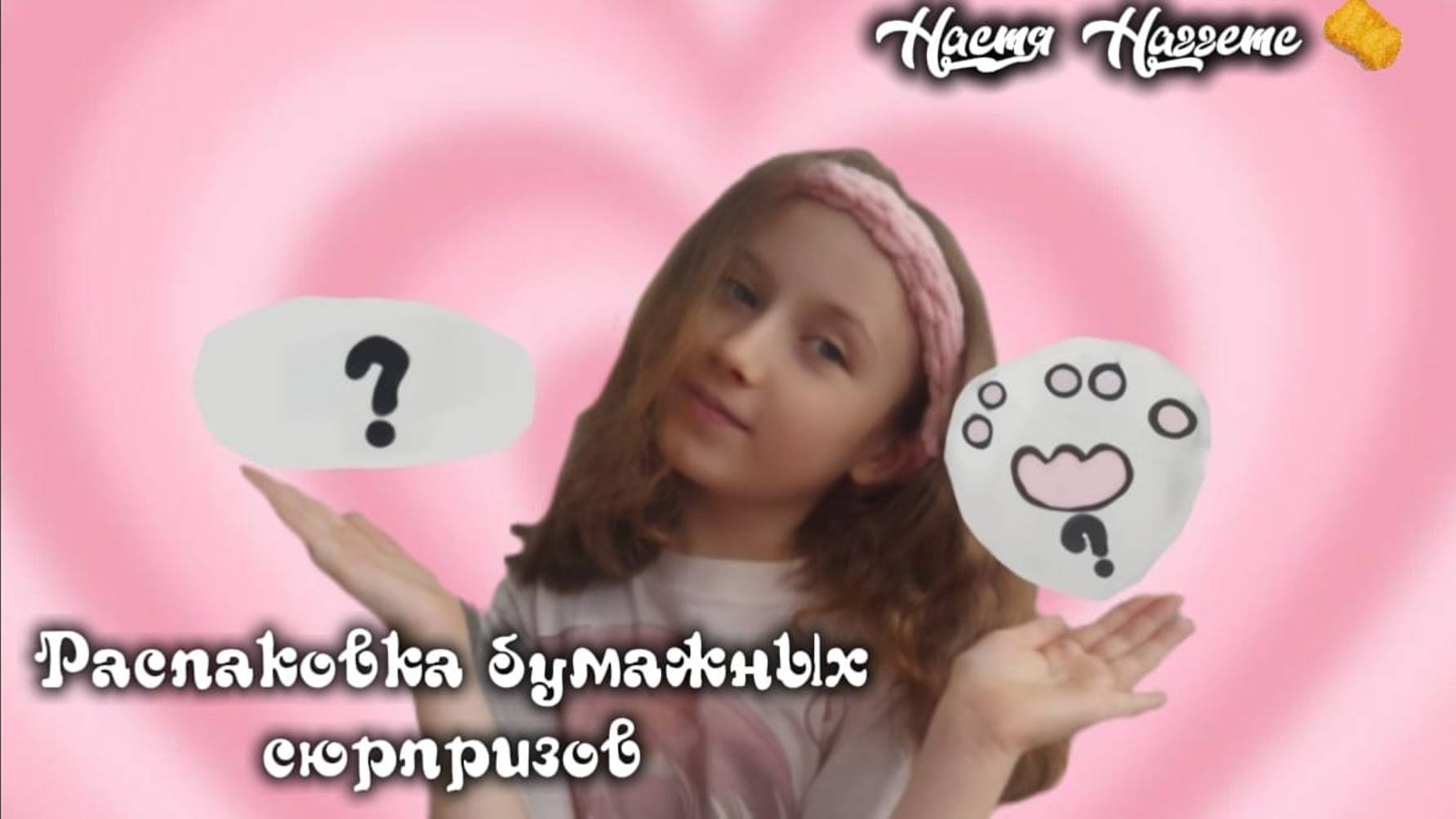 Настя Наггетс распаковывает бумажные сюрпризы пластыри и лапки котиков.