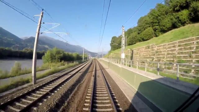 Высокая скорость транспорта вид из кабины машиниста поезда на природу Австрии Германии