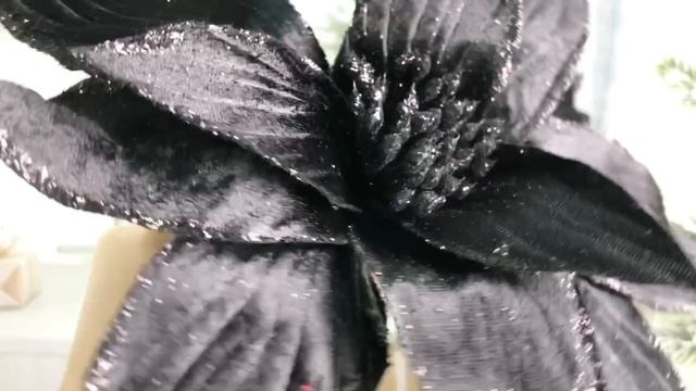 Искусственная пуансеттия БАРХАТНАЯ НОЧЬ на клипсе, 33 см, FF99116