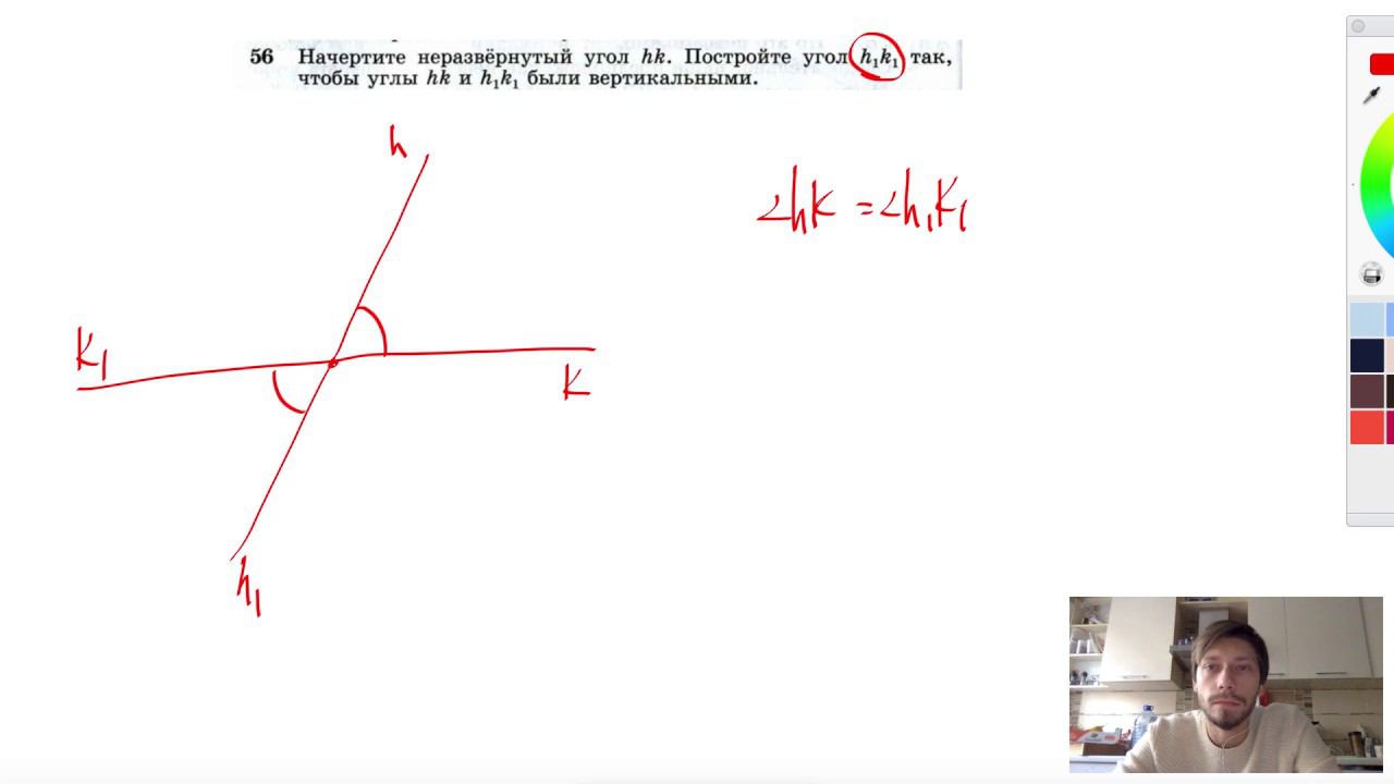 №56. Начертите неразвернутый угол hk. Постройте угол h1k1 так, чтобы углы hk и h1k1 были вертикальными. Мой второй канал для подготовки к ЕГЭ и ОГЭ - https://www.youtube.com/ЕвгенийСумин Инстаграм - https://www.instagram.com/EGE_OGE.math Личный инстаграм - https://www.instagram.com/ee_sumin VK - https://vk.com/evgeniysumin FB - https://www.facebook.com/EvgeniySumin