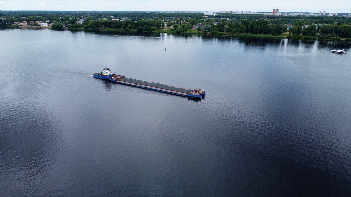 баржа с грузом плывет по Волге