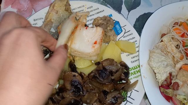 Мой обед 26.10.2023. Худею. Рыбу не стала есть, салат не доела.