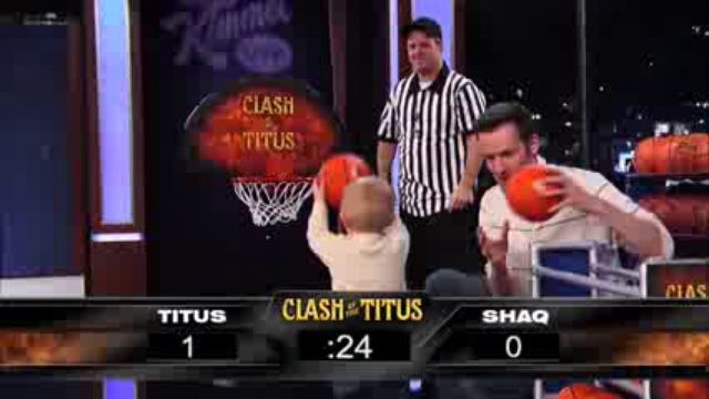 Битва титанов. Малыш обыграл Шакила Онила в баскетбол на шоу джимми киммела Shaq, Jimmy Kimmel, Titus