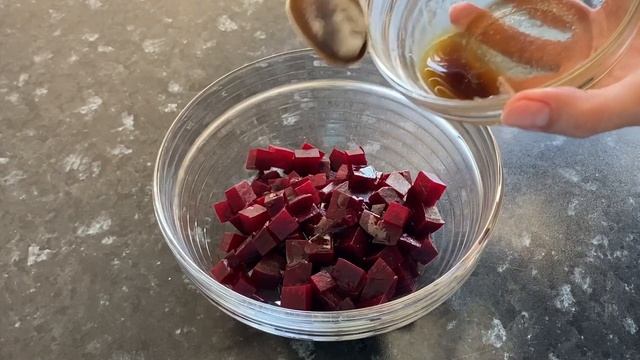 У меня есть для вас идея необычного и вкусного салата из свеклы и грецких орехов. Но это будет не банальный свекольный салат с орехами, который уже всем надоел, мы сделаем его нестандартным с незабываемым вкусом. Он отлично подойдет в качестве салата на праздничный стол, ведь у него вкус потрясающий! В наш салат из вареной свеклы мы добавим голубой сыр. Рецептов с голубым сыром много, но поверьте, сочетание ингредиентов в этом салате вас поразит, ведь у нас получится очень вкусный свекольный салат с грецкими орехами и голубым сыром. Ингредиенты: Вареная свекла - 180-200 г Шпинат - 60 г Голубой сыр Дор-блю - 60-80 г Грецкие орехи - 20 г Оливковое масло - 1,5 ст.л. Бальзамический соус - 1 ч.л. Сок лимона - 3 ч.л. Соль - 0,5 ч.л. Сахар - 0,5 ч.л.