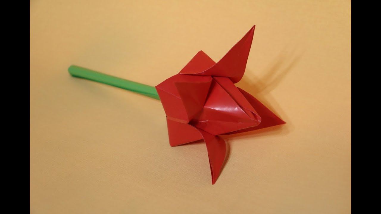 Оригами тюльпан из цветной бумаги