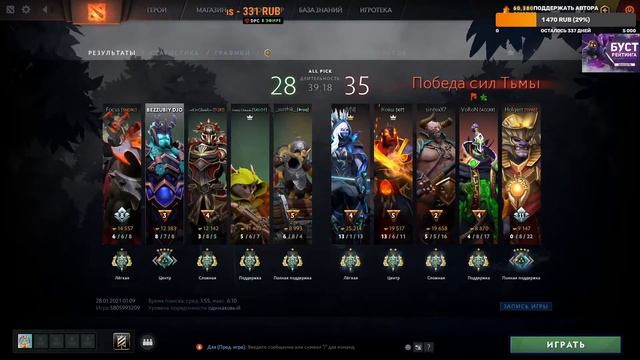 Стань ближе к профессиональным игрокам. Закажи буст своего аккаунта по ссылке https://vk.com/topic-176996819_41132162 . Сделаем апгрейд вашему рейтингу быстро, надёжно и не дорого. ✅✅ПОДДЕРЖАТЬ СТРИМЕРА https://www.donationalerts.com/r/izzy_game ✅✅ 🔴🔴 ЗАКАЗАТЬ МУЗЫКУ - 10 РУБ 🔴🔴 ГОЛОСОВОЕ СООБЩЕНИЕ - 15 РУБ 🔴🔴 ПРОСТО СООБЩЕНИЕ - 5 РУБ ✅✅ЧАТ БЕСПЛАТНЫЙ✅✅ 🔴🔴 ЗАКАЖИ ЧЕЛЕНДЖ СТРИМЕРУ СТОИМОСТЬ 66 РУБ! (Я ПОПРОБУЮ ВЫПОЛНИТЬ ЕГО В БЛИЖАЙШЕЙ ИГРЕ) 🔴🔴 🔴🔴 ОТЫГРАТЬ 1 ЛП - 40 РУБ 🔴🔴 🔴🔴Все донаты прочитаю после стрима или на стриме. Если вы не подписаны, то подпишитесь) 🔴🔴 🔴🔴 ⚡⚡ ССылочка на группу вк https://vk.com/izzy_game ⚡⚡🔴🔴 🔴🔴 По поводу сотрудничества, в группу вк, ссылочка выше 🔴🔴 🔴🔴 ⚡⚡ Подпишитесь на мой инстаграм https://www.instagram.com/axax_rash/⚡⚡🔴🔴 ⚡⚡ТОП 100 ДОНАТЕРОВ⚡⚡ 1☛ STEP - 4000 руб 2☛ VIRUS - 1813 руб 3☛ RAEDAN - 1288 руб 4☛ ГВОЗДЬ - 430 руб 5☛ Alexander Vronsky - 420 руб 6☛ PiratDebil - 400 руб 7☛ GYRO_ZEPPPELI - 383 руб 8☛ TRUNNER - 357 руб 9☛ W33 - 340 руб 10☛ CANVAS - 331 руб 11☛ JAYSON - 305 руб 12☛ Shellby - 293 руб 13☛ OxetrRe - 290 руб 14☛ Lina Santa - 250 руб 15☛ АРТУР НОВАК - 243.60 руб 16☛ X4CK1 - 235.04 руб 17☛ DENDI - 226 руб 18☛ Мусорный пакет - 225 руб 19☛ АРТУР Н - 216 руб 20☛ DMITRIY BABESHKO - 215 руб 21☛ irbba - 209.11 руб 22☛ ДЖАГЕР - 200 руб 23☛ ДИМА НОВИКОВ - 187.88 руб 24☛ ЦАРЬ - 182 руб 25☛ ANGELYOUTUBE - 165 руб 26☛ UFC TV - 159 руб 27☛ ПАВЛУША - 140 руб 28☛ JOO - 130.10 руб 29☛ FASTRAZOR - 130 руб 30☛ BLACK KING - 105 руб 31☛ ЛЁГКОСТЬ БЫТИЯ - 100 руб 32☛ МИХА - 100 руб 33☛ Та самая энигма) - 100 руб 34☛ ROMKA MOSZKOWSKI - 95 руб 35☛ GlowingDead - 90 руб 36☛ АРТУР - 80 руб 37☛ SLARK - 65 руб 38☛ LINA - 60 руб 39☛ Жизнь - 50 руб 40☛ OXOTN1K - 50 руб 41☛ MAXIMEN68 - 50 руб 42☛ ШУЛБИ - 50 руб 43☛ XAKER - 50 руб 44☛ АБЛЯЗ - 50 руб 45☛ HAARHUS - 50 руб 46☛ ОГР (ДВЕ ГАЛАВЫ) - 50 руб 47☛ MEEPOSHKA - 50 руб 48☛ TAKTILAR - 46 руб 49☛ ЖЕНЬКА НЕСМЕЛОВ - 40 руб 50☛ БОМЖ ИЗ ХАРЬКОВА - 40 руб 51☛ JAYJAY - 40 руб 52☛ AMPHITRITE - 40 руб 53☛ ПАФАС - 34 руб 54☛ INST:BBBBAD_BOYYY GO SUB ❤ - 32 руб 55☛ ИБРАИМ СУЛЕЙМАНОВ - 31.90 руб 56☛ SARADEEP - 31 руб 57☛ СОЛИСТ - 30 руб 58☛ КЛОУН - 30 руб 59☛ GODARROW - 30 руб 60☛ OJINTED - 25 руб 61☛ ZERNOVKA - 22 руб 62☛ СЕРЖАНТ - 22 руб 63☛ ХЕЙТЕР - 20 руб 64☛ ЛЕШИК ЛЕШИК - 20 руб 65☛ ENEL' БУСТЕР - 20 руб 66☛ ШЕЛБИ МАГОВИЧ - 20 руб 67☛ FOLN - 20 руб 68☛ IBRAIM.20 - 16 руб 69☛ НИКИТА РАСКАСОВ - 15 руб 70☛ KRISTOVOBT - 15 руб 71☛ ZADROT RUDGE - 15 руб 72☛ LORIKPLAY - 15 руб 73☛ ЛАЙОН - 15 руб 74☛ EDWARD BIL - 15 руб 75☛ FLLIS BALE - 14 руб 76☛ SHELLBYDOTA2 - 11 руб 77☛ SLAVA LADYGIN - 10 руб 78☛ ДЕДУШКА - 10 руб 79☛ ПРИВЕТ ОТ СТРЕЯ - 10 руб 80☛ EGOR_4K - 10 руб 81☛ 3DART_VLADISLAV - 10 руб 82☛ ? - 10 руб 83☛ LINA(EZ COMBACK) ТЫ ВСПОМНИШЬ - 10 руб 84☛ АЛЕКСАНДР - 10 руб 85☛ IVANEH - 10 руб 86☛ ТАЙНЫЙ ПОКЛОННИК - 10 руб 87☛ БУСТЕР НА ОГРИХЕ - 10 руб 88☛ 123 - 10 руб 89☛ CHIGIRIN PLAY - 10 руб 90☛ JAYSON, ТЕПЕРЬ AKATSUKI - 10 руб 91☛ MEAW - 10 руб 92☛ АЛИХАН ИСМАИЛОВ - 10 руб 93☛ Kirado - 10 руб 94☛ MANTEKOR - 10 руб 95☛ КОПЕК - 8 руб 96☛ АМОРАЛ - 5 руб 97☛ PAVER - 5 руб 98☛ ЛОМАЮ 228 - 5 руб 99☛ БАТЯ ЮТУБА - 5 руб 100☛ BYZIINC - 5 руб Огромное Вам спасибо! Информация с топ донатерами будет обновляться! Обновлено 26.01.2021