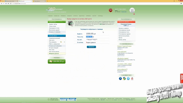 Ссылка на регистрацию- https://goo.gl/QJ7Sx2 ------------------------------------------------------------------------------------------------------------ Ответы при регистрации на СЕО СПРИНТ: 1. Рекламодатель 2. Аккаунт будет удален 3. Категорически запрещены 4. Запрещено 5. Не может. Деньги можно потратить только на рекламу 6. Баланс и площадки обнуляются, деньги не возвращаются, рефералы свободны 7. Покинуть проект